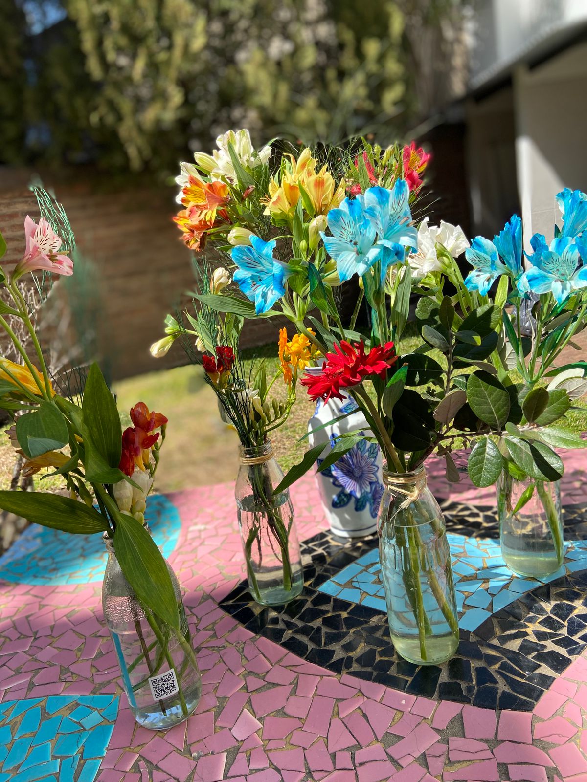 Colorido jardín, con un jazmín y otras especies para brindar un plácido ambiente familiar.